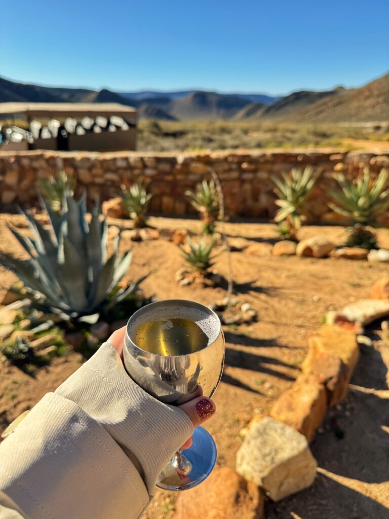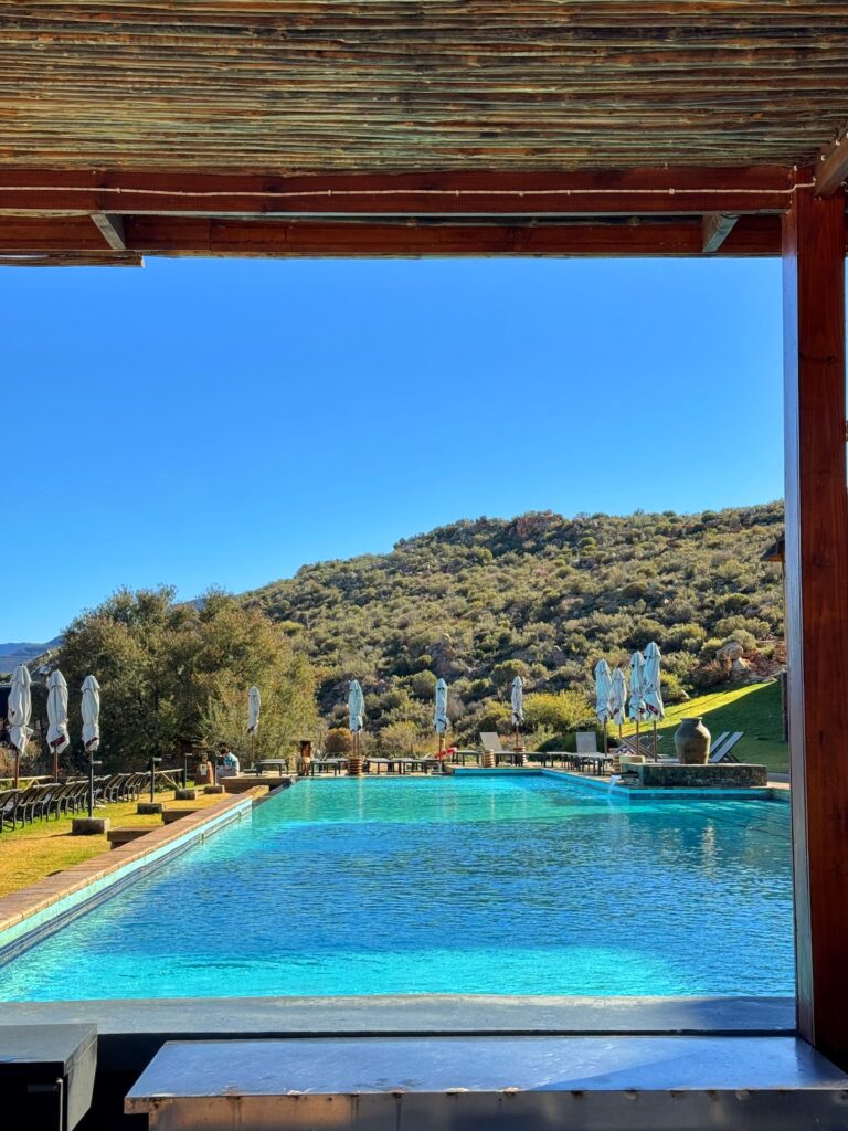 After a scenic drive from Cape Town, arriving at the Aquila Safari Lodge felt like stepping into another world, one where luxury met the untamed beauty of the African wilderness. The warm welcome set the tone for what was to come, and soon I found myself settling into the serene lodge surrounded by rugged mountains and wide-open skies. The pool area, with its inviting loungers and views of the reserve, was the perfect spot to unwind and take it all in. Before the game drive, we were treated to a delicious buffet lunch, which included an impressive spread of local and international dishes.